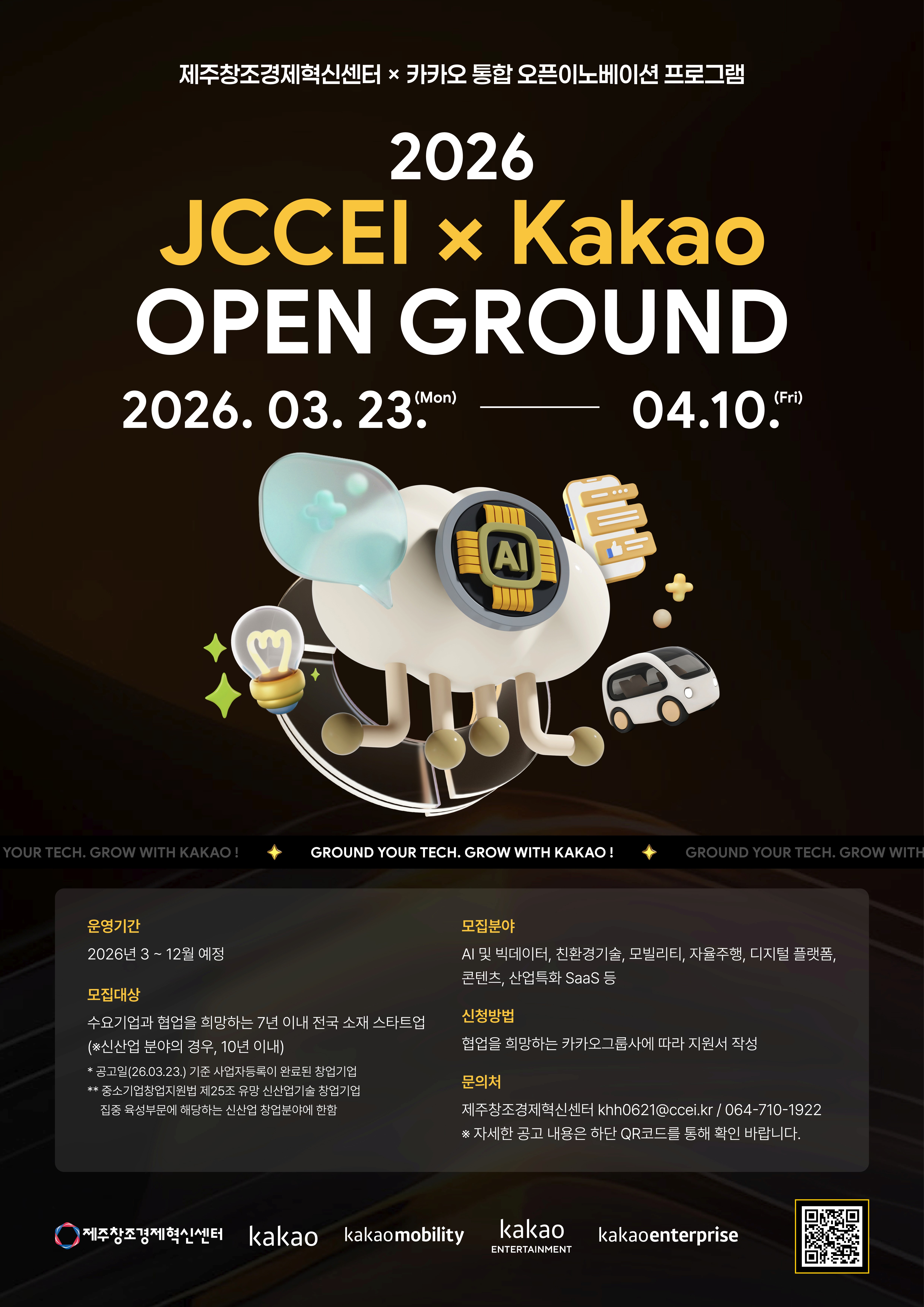 [모집공고] 카카오 통합 오픈이노베이션 사업「2026 JCCEI×Kakao 오픈 그라운드 프로그램」